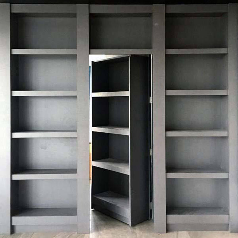 Vente directe d'usine, étagères à livres en bois modernes, portes cachées, rails coulissants silencieux, double vitrage, verre trempé, sur mesure