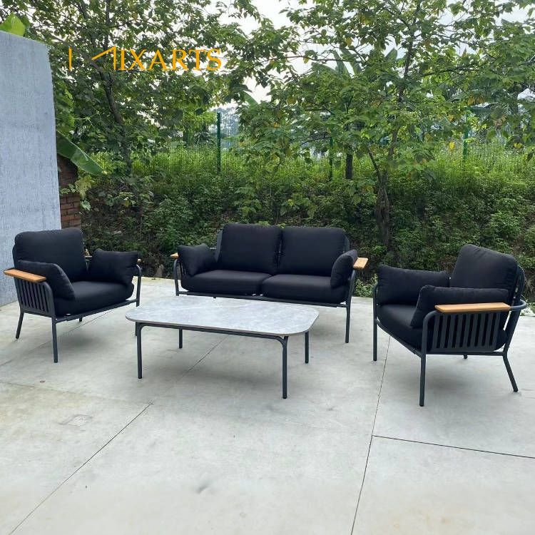 Vente directe d'usine Meubles d'extérieur Mobilier de jardin en aluminium Teakwood Fauteuil Canapé Ensemble de canapés modernes Chaise de loisirs