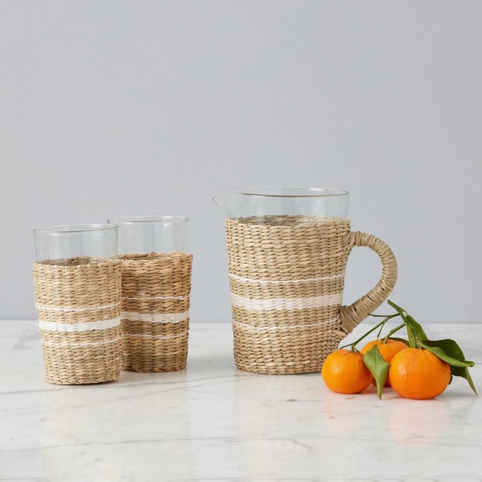Vente directe d'usine nouvelle arrivée couverture de tasse en jonc de mer tissé pour boissons tasses et tasses en verre support sac en vrac quantité gobelets