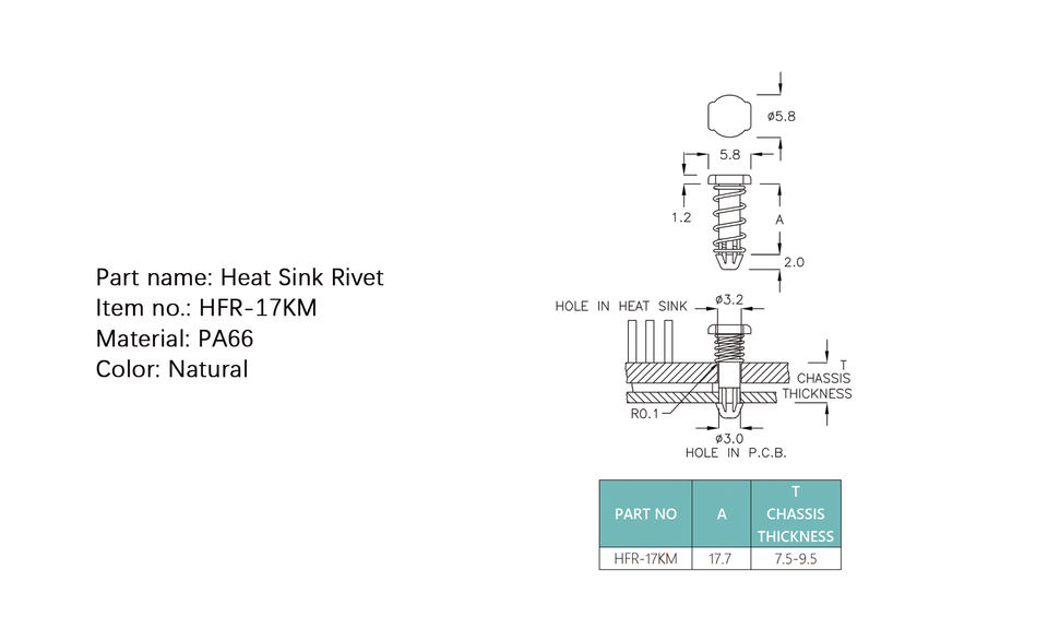Vente directe d'usine Rivets à enfoncer Dissipateur de chaleur Rivets de montage à ressort Rivets à encliquetage pour dissipateur de chaleur et assemblage de circuits imprimés