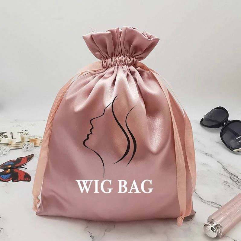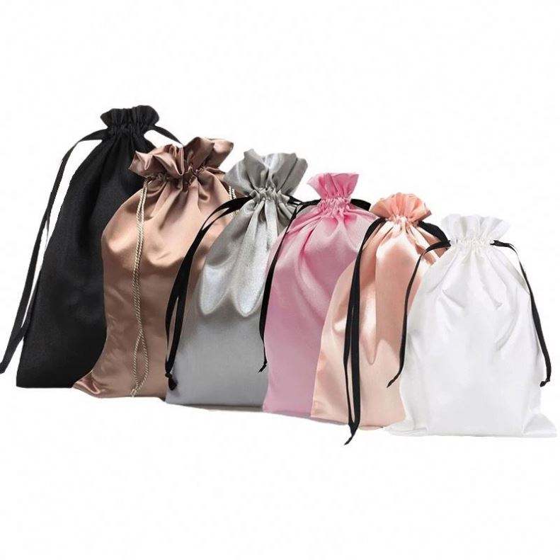Sac en satin à cordon de serrage pour perruques et mèches de cheveux, grande taille, anti-poussière, recyclable, avec logo personnalisé, vente directe usine