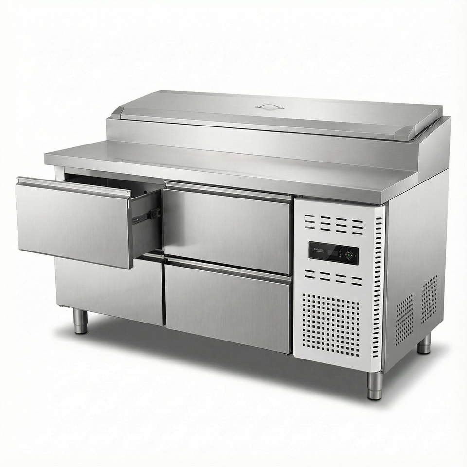 Vente directe d'usine Réfrigérateurs et congélateurs Table de préparation de pizza sur comptoir Réfrigérateur Nouvelle tendance Refroidisseur de salade pour usine de boissons