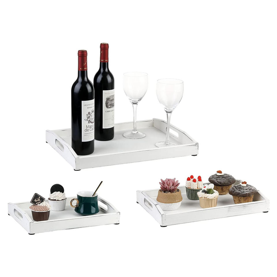 Vente directe d'usine rustique blanc rectangulaire en bois plateau de service ensemble de 3 poignées plateau de cuisine plateaux de décoration de table vendeur en ligne