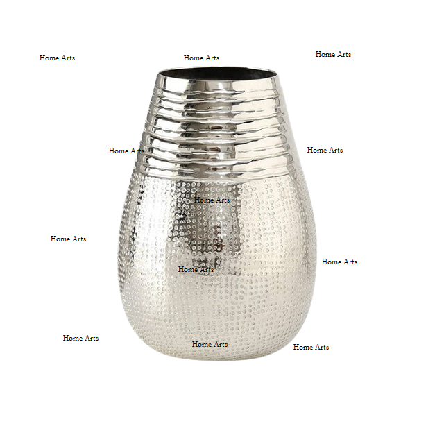 Vente directe d'usine Vase à fleurs couleur argent Vase à fleurs en aluminium Design fantaisie Vase à fleurs artificielles de forme ronde