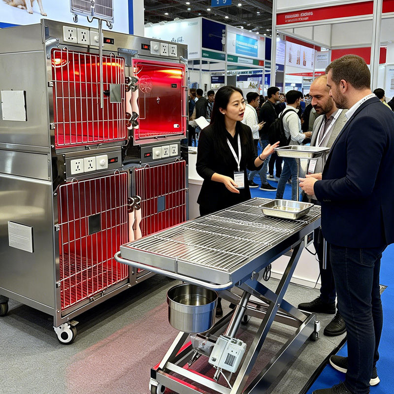Vente directe usine – Équipement de soins vétérinaires style simple pour cliniques : Cages pour chiens avec poteau IV à roulettes et panneau de fixation à bouton