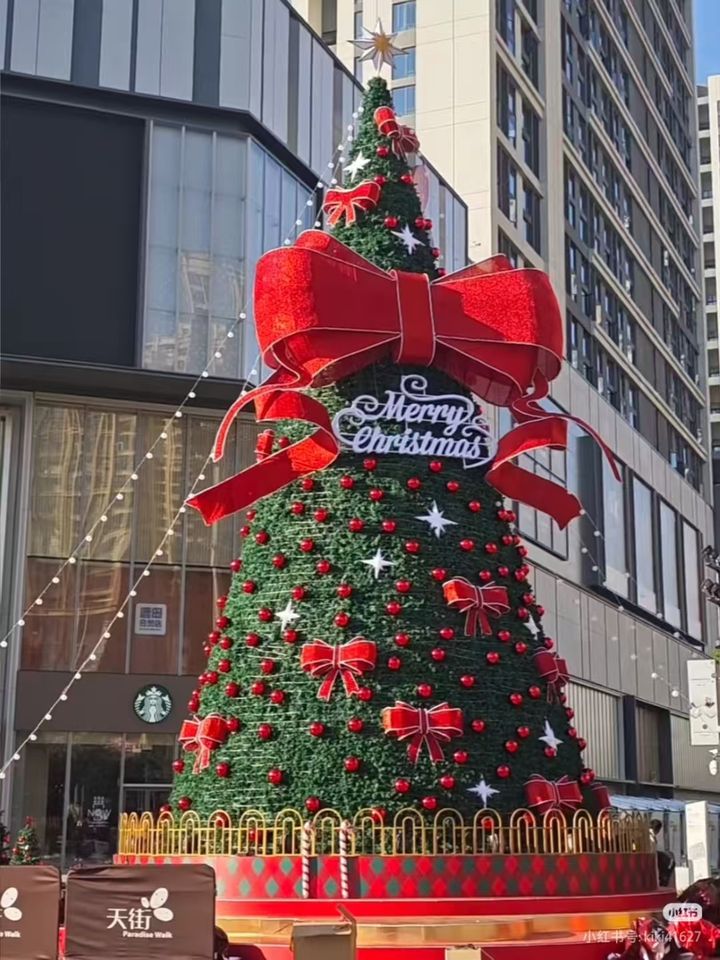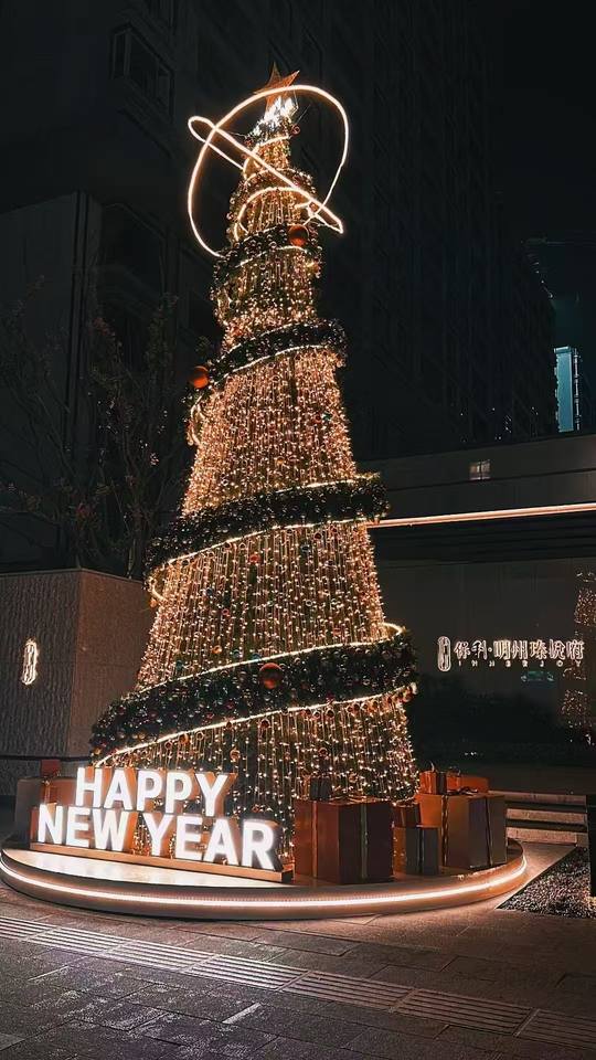 Vente directe d'usine, petit volume, structure spéciale, arbre de Noël d'extérieur avec boules décoratives et guirlandes lumineuses, nœud papillon