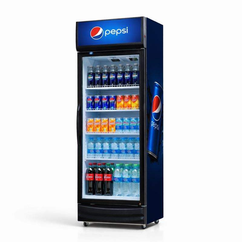 Réfrigérateur de présentation vertical à porte vitrée simple, éclairage LED, étagères réglables, pour boissons – Vente directe usine