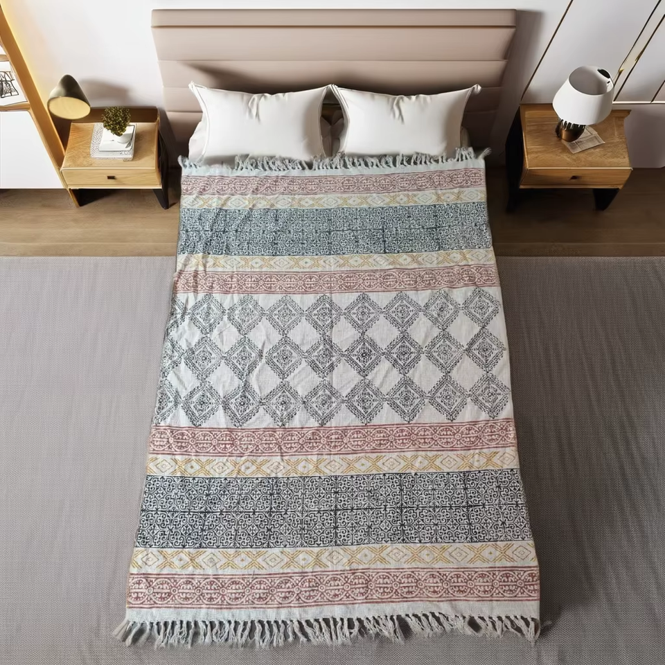 Vente directe d'usine, jeté de luxe en coton 100% doux, confortable, écologique, respirant, imprimé à la main en Inde, multicolore pour l'hiver