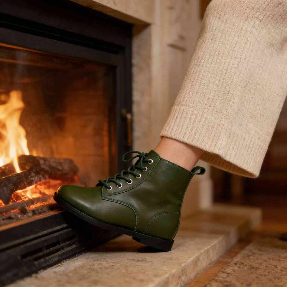 Vente directe d'usine, bottes de combat en cuir vert pour femmes, à lacets, avec fermeture éclair latérale, bottes à la cheville