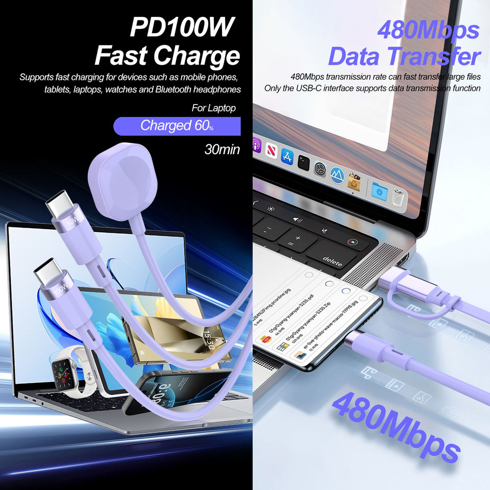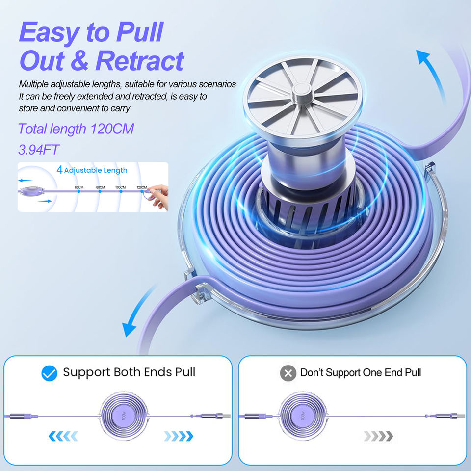 Vente directe d'usine, câbles de charge rapide 100W TPE télescopiques à deux têtes, trois données, type-C PD100W 5A pour ordinateur, prix élevé