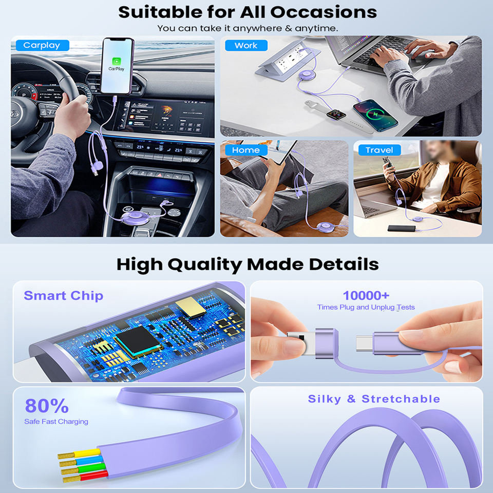 Type:Câble usb type-c, Câble USB 3 en 1