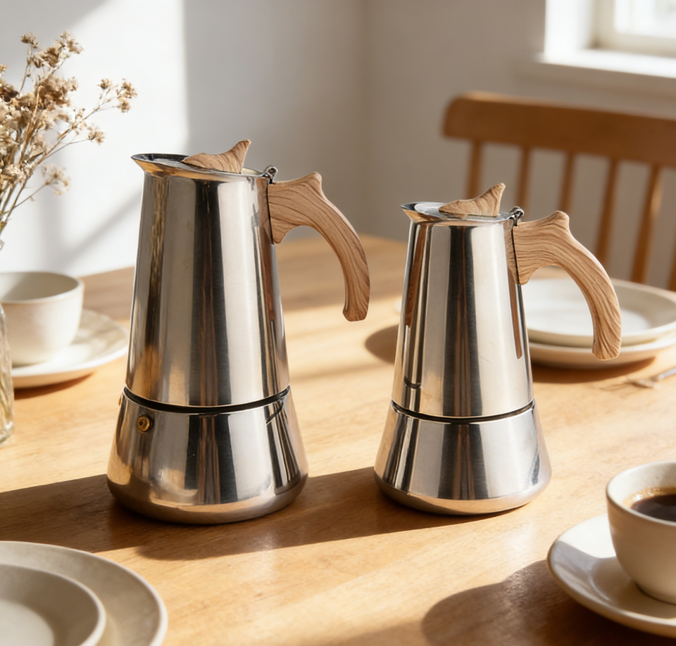 Vente directe usine – Cafetière expresso Moka en acier inoxydable, compatible induction, pour 2, 4, 6 ou 9 tasses
