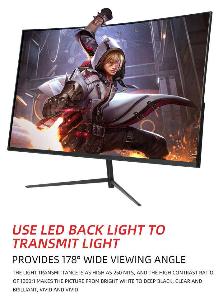 Ventes directes d'usine 24 pouces sans cadre Curvo 16:9 bureau 2800R écran incurvé 144Hz LED 2800R moniteurs de jeu à écran incurvé