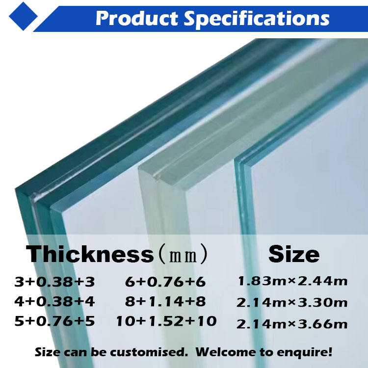 Vente directe usine – Verre feuilleté de sécurité 3mm, 4mm, 5mm, 6mm, 8mm, 10mm pour garde-corps, escaliers, murs rideaux et automobile
