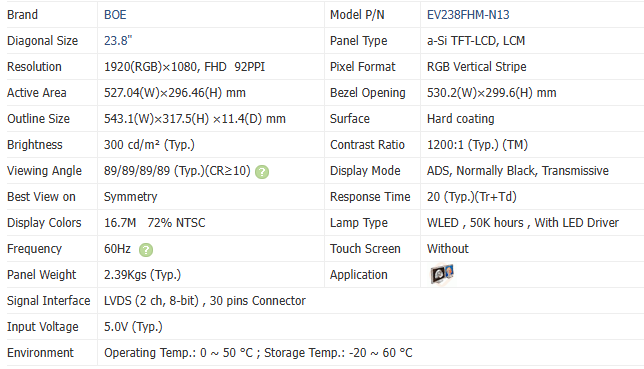 Active Area:527.04(W)*296.46(H) mm