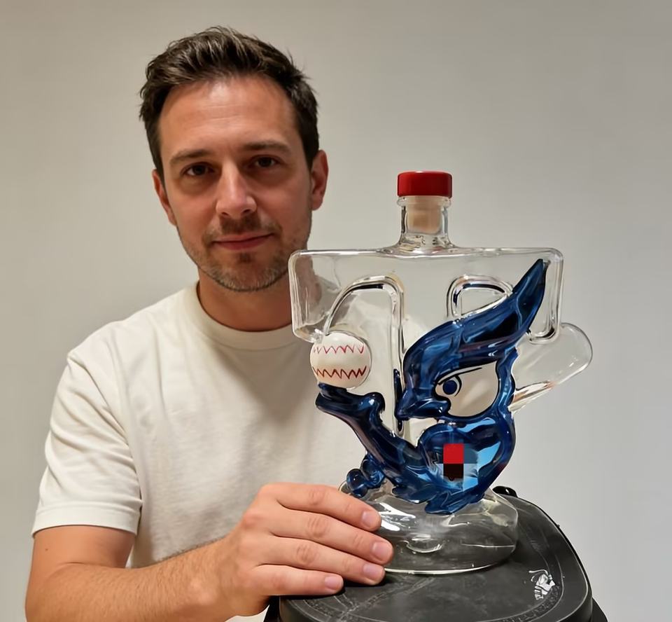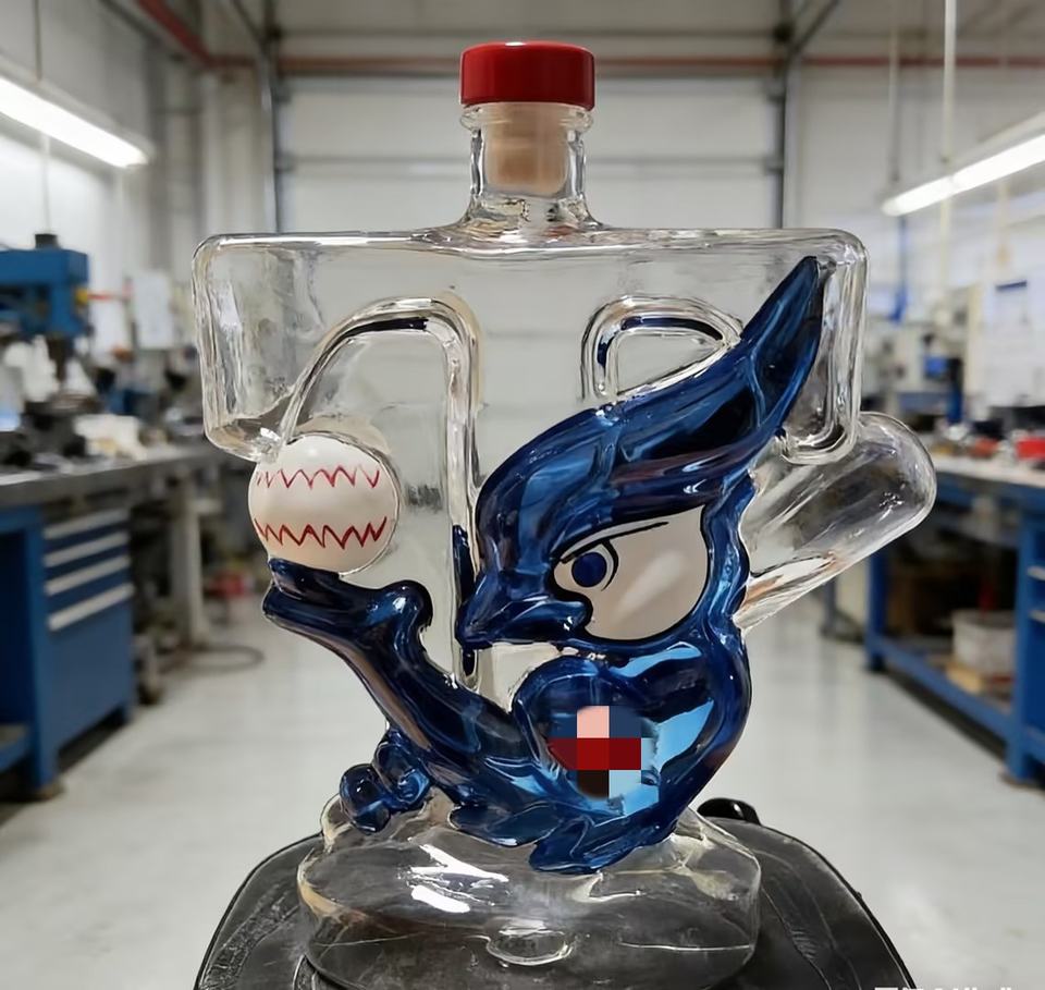 Vente directe d'usine, carafe à liqueur en verre en forme d'oiseau bleu baseball, à thème sportif, pour la décoration de bar, le stockage d'alcool