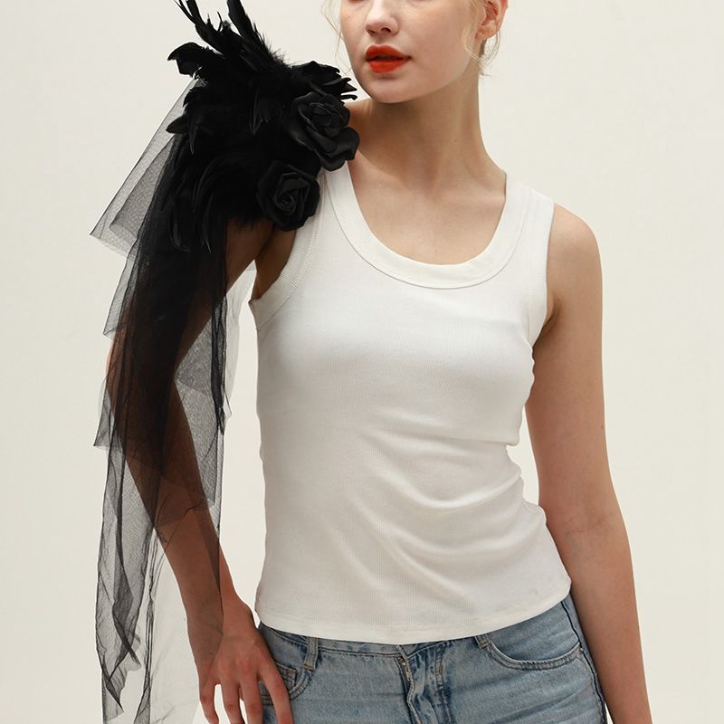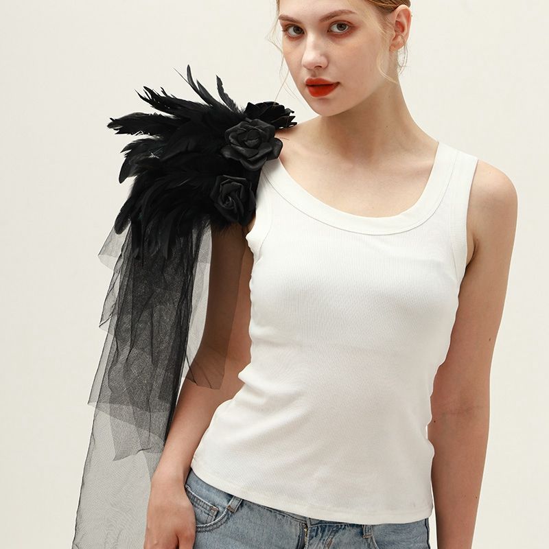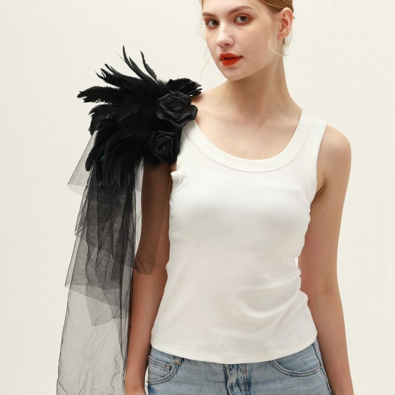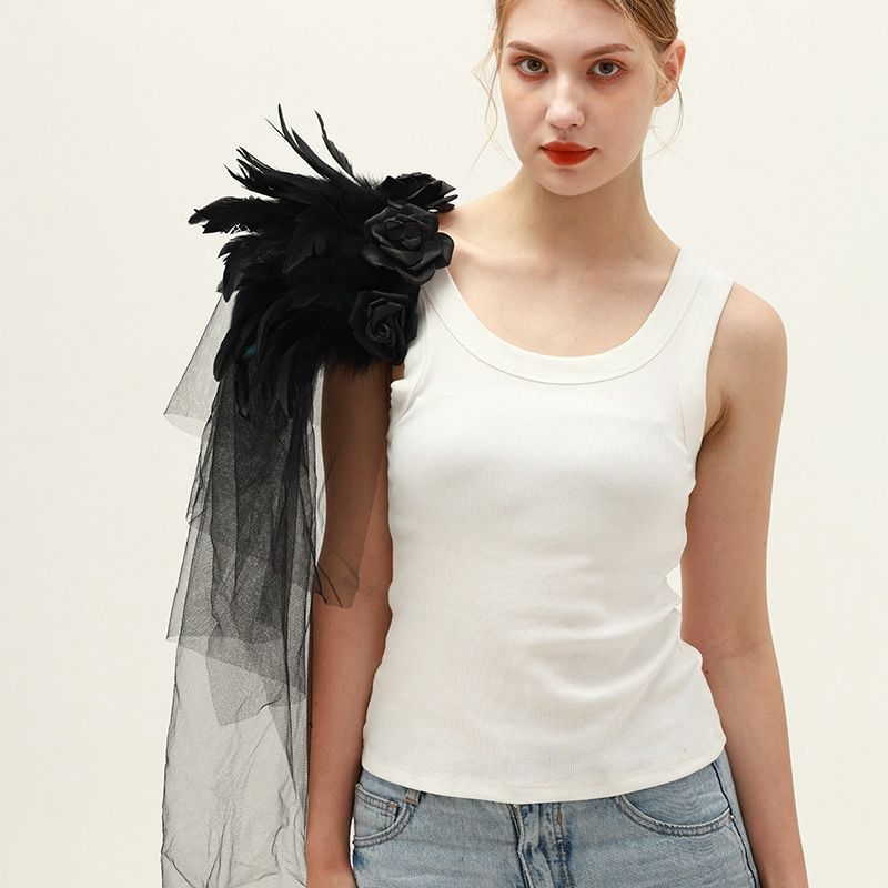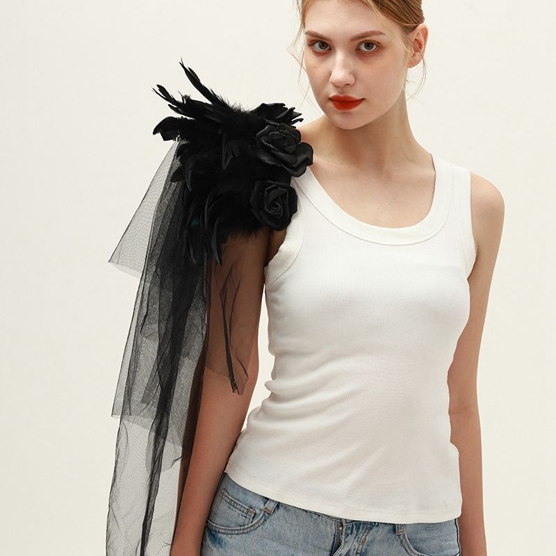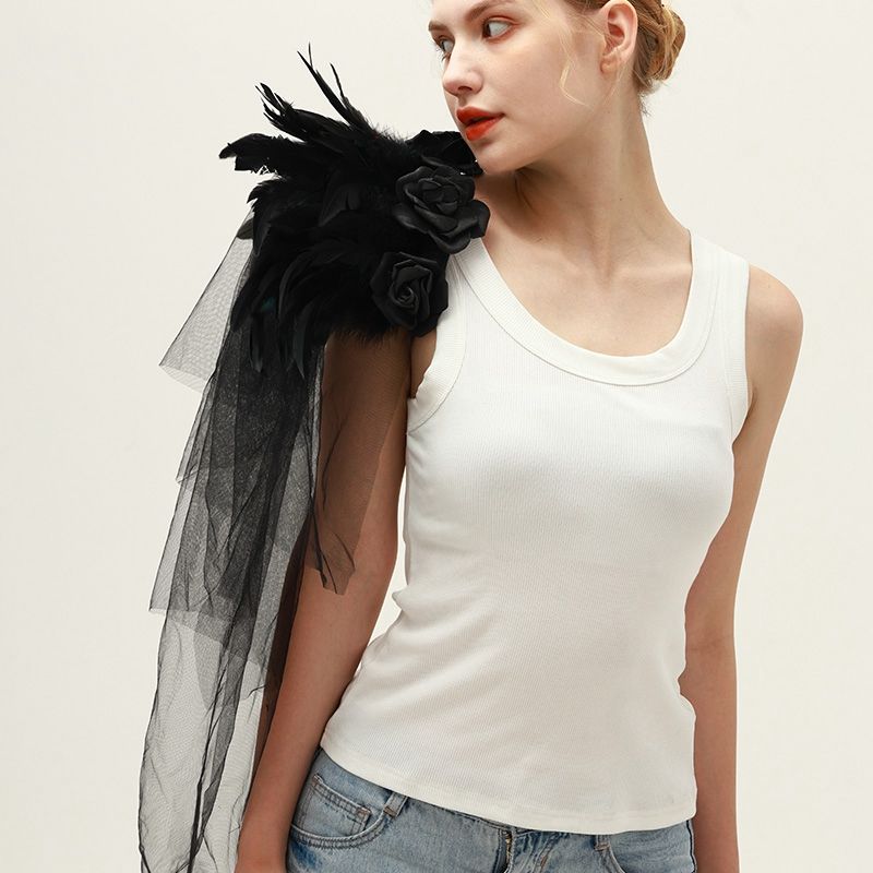 Ventes directes d'usine Noir Gothique Plume Epaulette Halloween Show Ball Tulle Rose Plume Châle