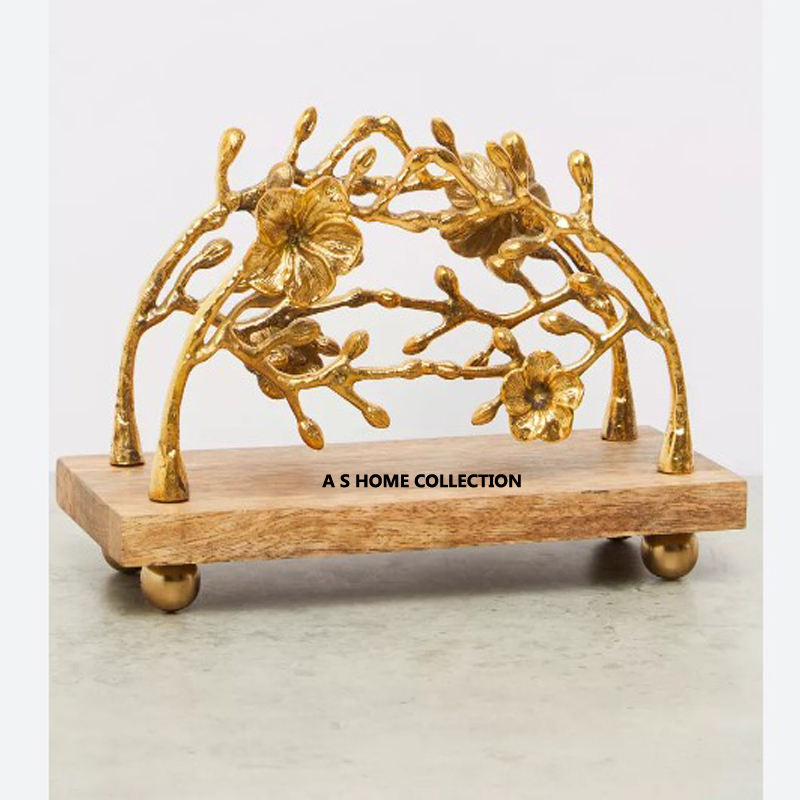 Vente directe d'usine Design floral créatif en laiton Porte-serviettes en métal Porte-serviettes de table personnalisé Porte-mouchoirs de table