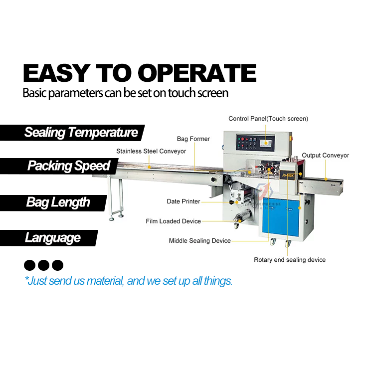 Vente directe d'usine, machine d'emballage automatique horizontale personnalisée pour le petit-déjeuner, pain, boulangerie, croissant