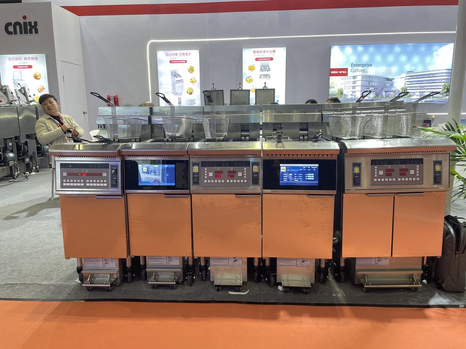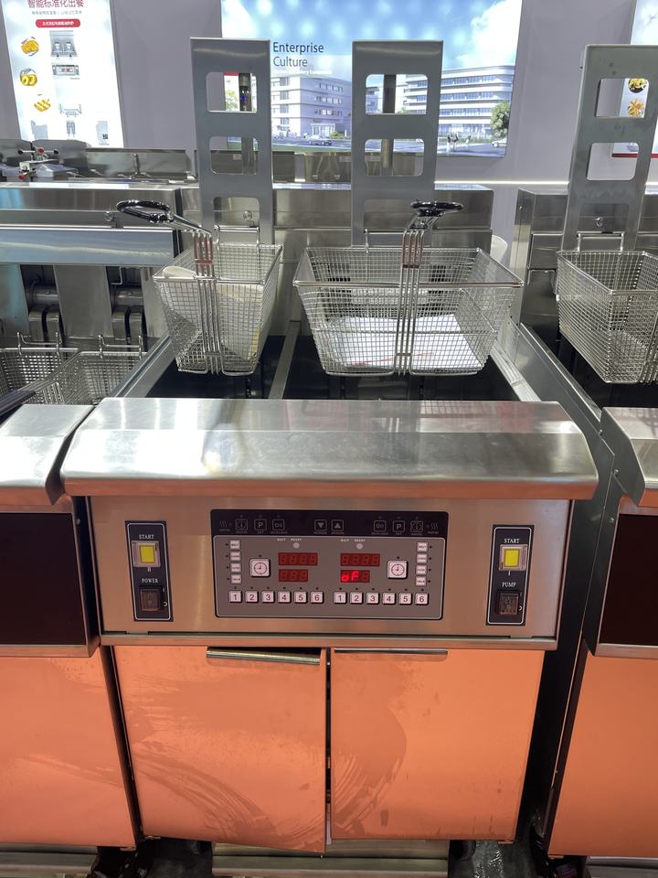 Vente directe d'usine, friteuse électrique de haute qualité, friteuse à poulet pour restauration rapide, friteuse ouverte à trois cylindres avec système de filtration d'huile