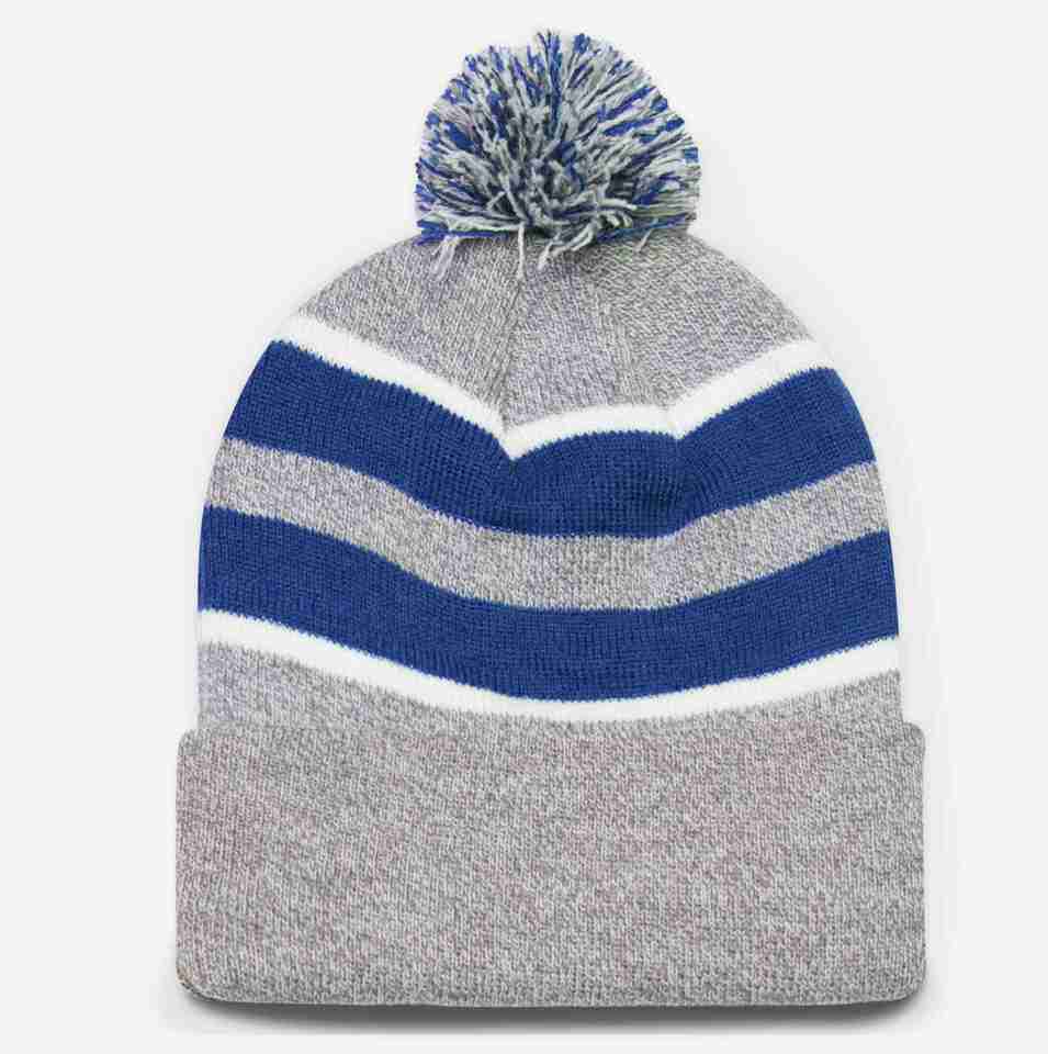 Vente directe d'usine, bonnet tricoté personnalisé, 100% acrylique, rayé, unisexe adulte, bonnet d'hiver avec votre propre logo brodé et nœud