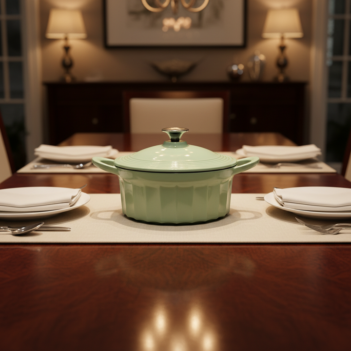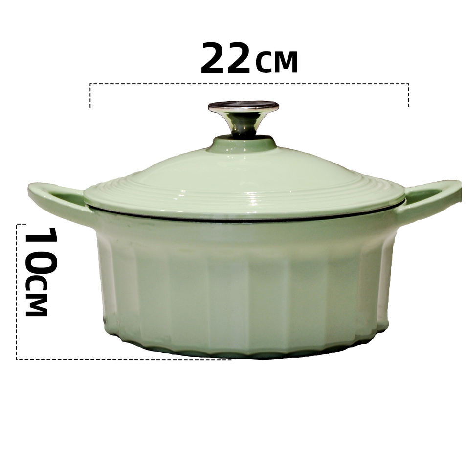 Vente directe d'usine, marmite en fonte émaillée vert clair, casseroles de cuisine, ustensiles de cuisine en fonte émaillée, cocotte en fonte