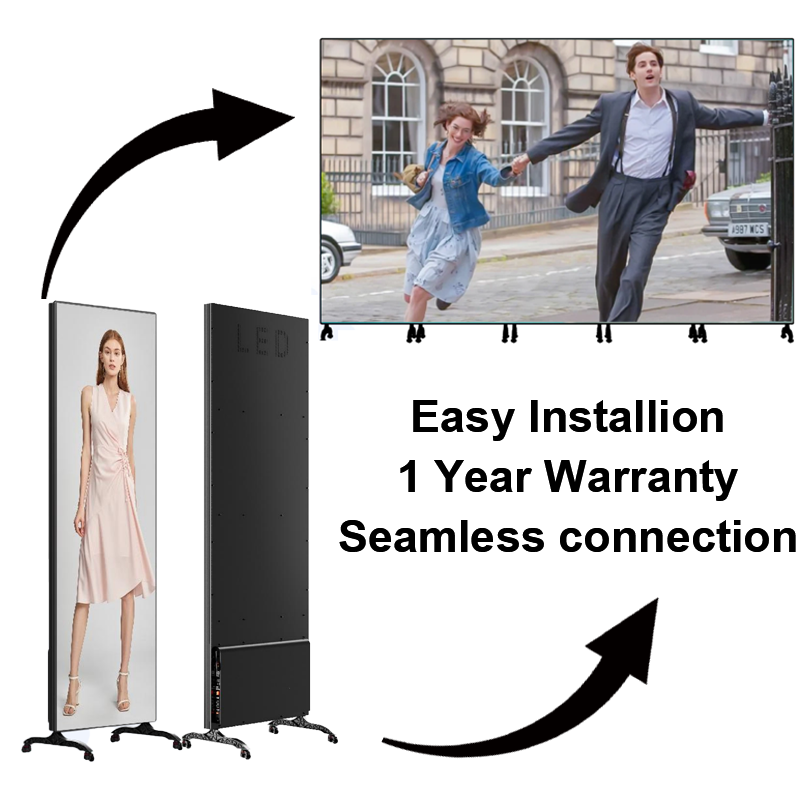 Écran LED mobile intelligent d'intérieur P1.86 en aluminium, vente directe d'usine, autoportant pour centres commerciaux