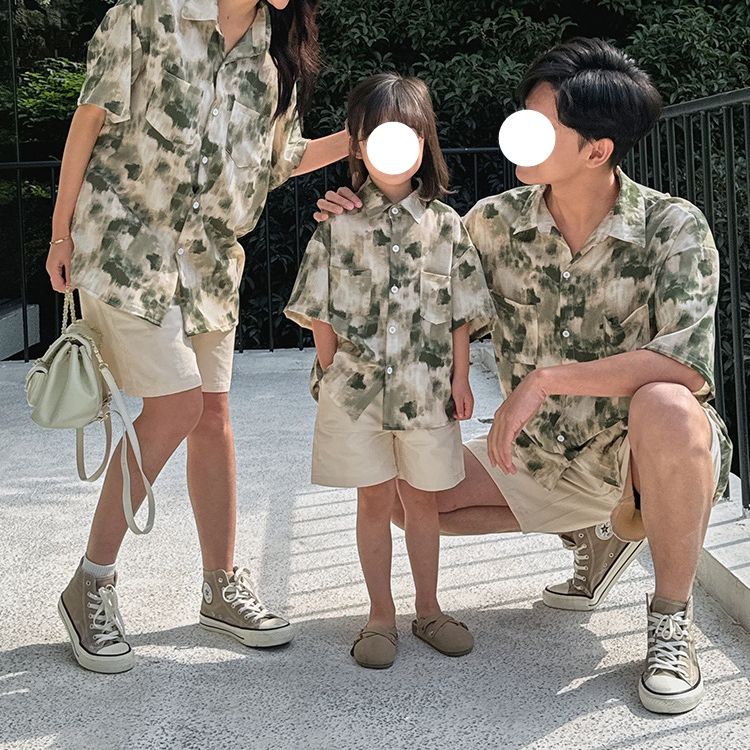 Ventes directes d'usine nouvel été enfants à manches courtes imprimé fleuri chemise Parent-enfant porter lâche bord de mer ensembles de vacances