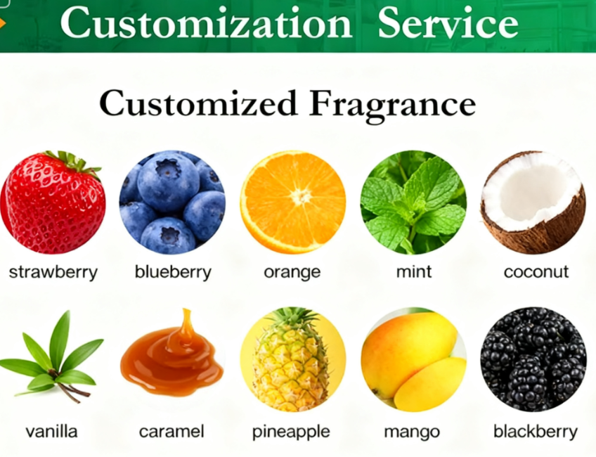 Parfum:Café, Citron, Pomme, Lavande, etc.Tout parfum dont vous avez besoin
