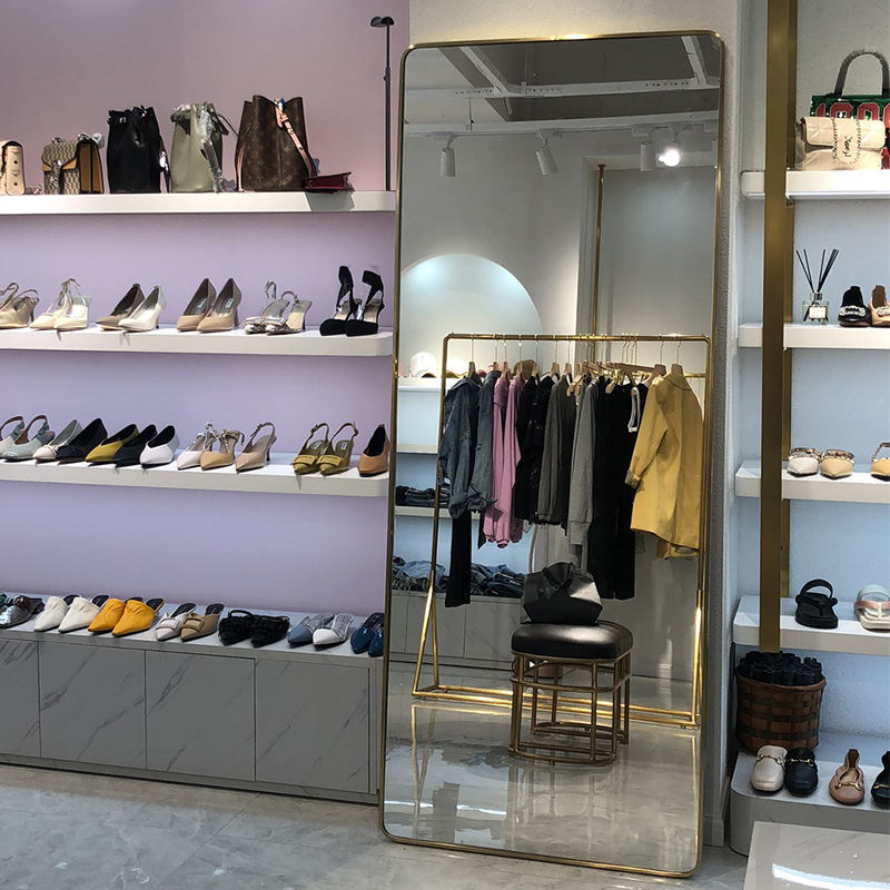 Arc avec bras surdimensionné en alliage d'aluminium, miroir de corps complet sur pied pour magasin de vêtements, vente directe d'usine