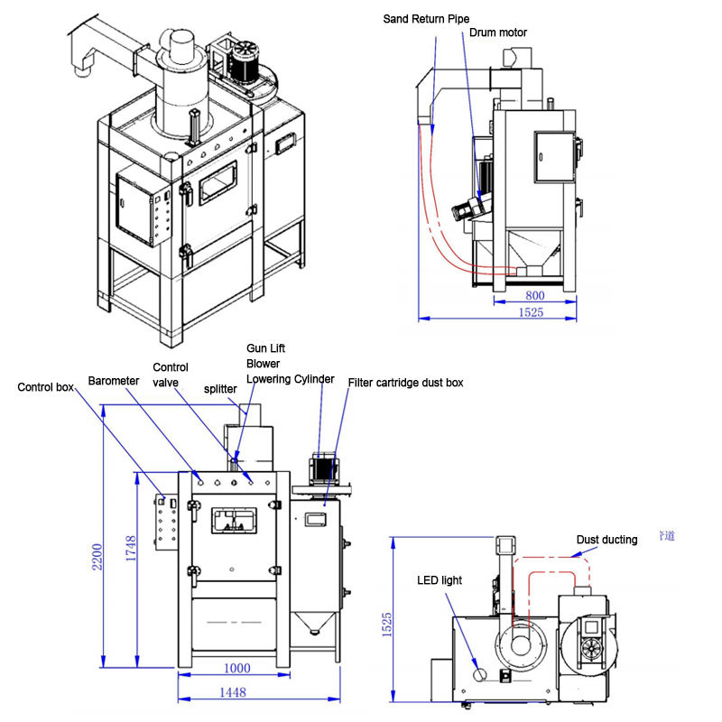 Ventes directes d'usine Machine de sablage de jante Sableuse à sec/humide/à eau Armoire de sablage à vapeur sans poussière