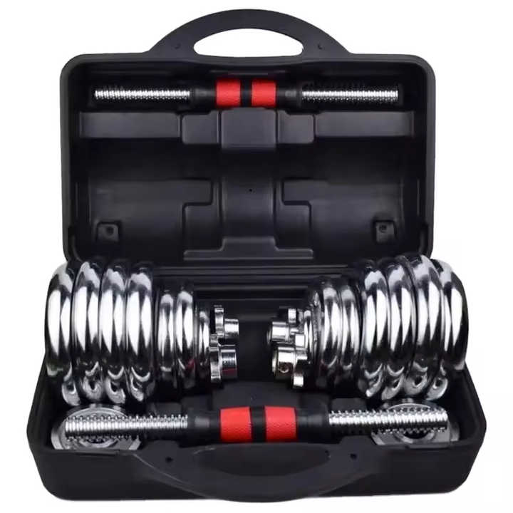 Nouvel ensemble d'haltères réglables de 50 kg avec barre de connexion, barre de musculation en fonte chromée pour l'entraînement de force à domicile