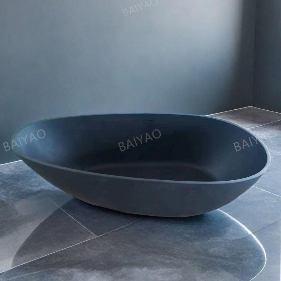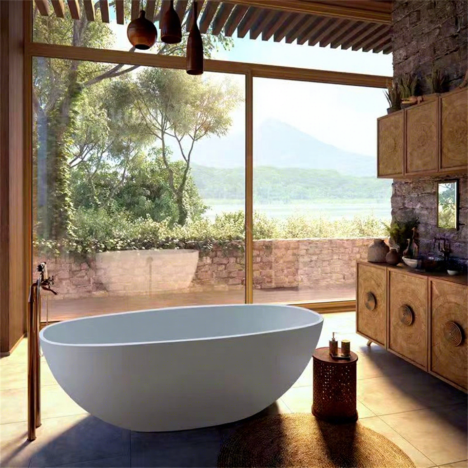 Vente directe d'usine, baignoire en pierre artificielle pas chère, baignoire autoportante avec hydromassage, baignoires avec système d'évacuation de l'eau pour 1 personne