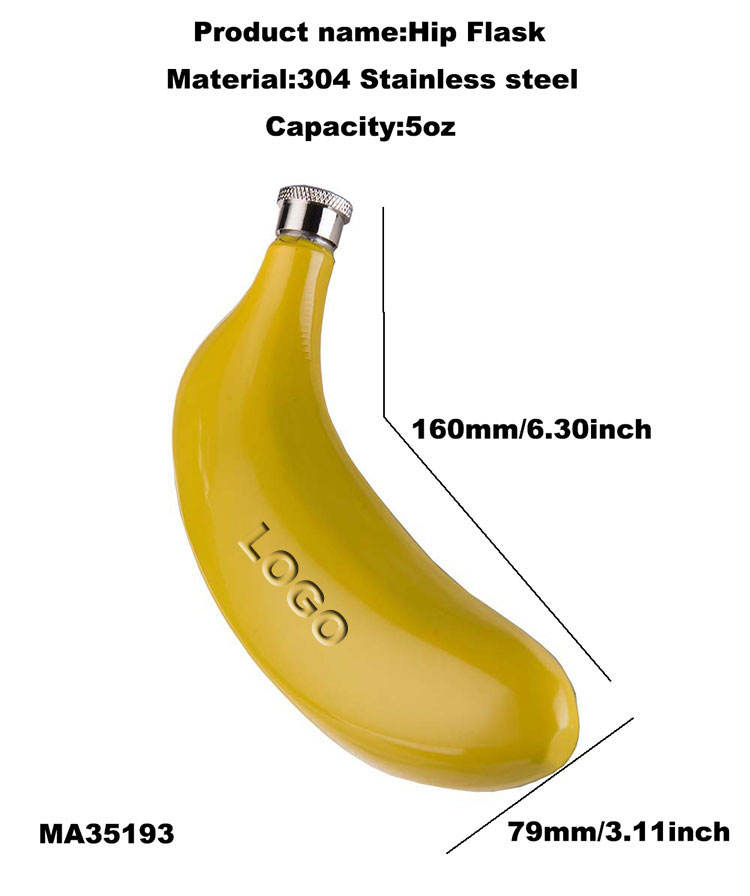 Vente directe d'usine LOGO personnalisé 5oz Alcool 304 Flacon en acier inoxydable Flacon Pot à vin Banane Whisky Flacon à alcool