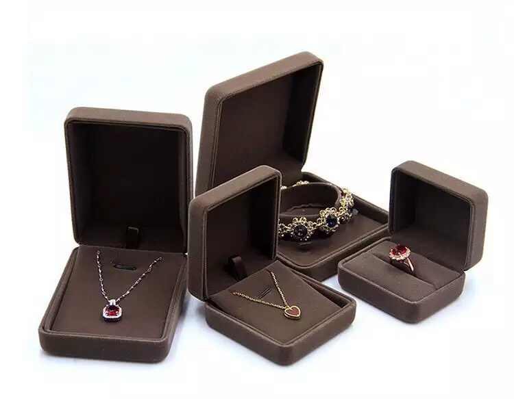 Boîte d'emballage en velours de haute qualité, vente directe d'usine, boîte de rangement pour collier en velours marron haut de gamme, boîte à bijoux personnalisée