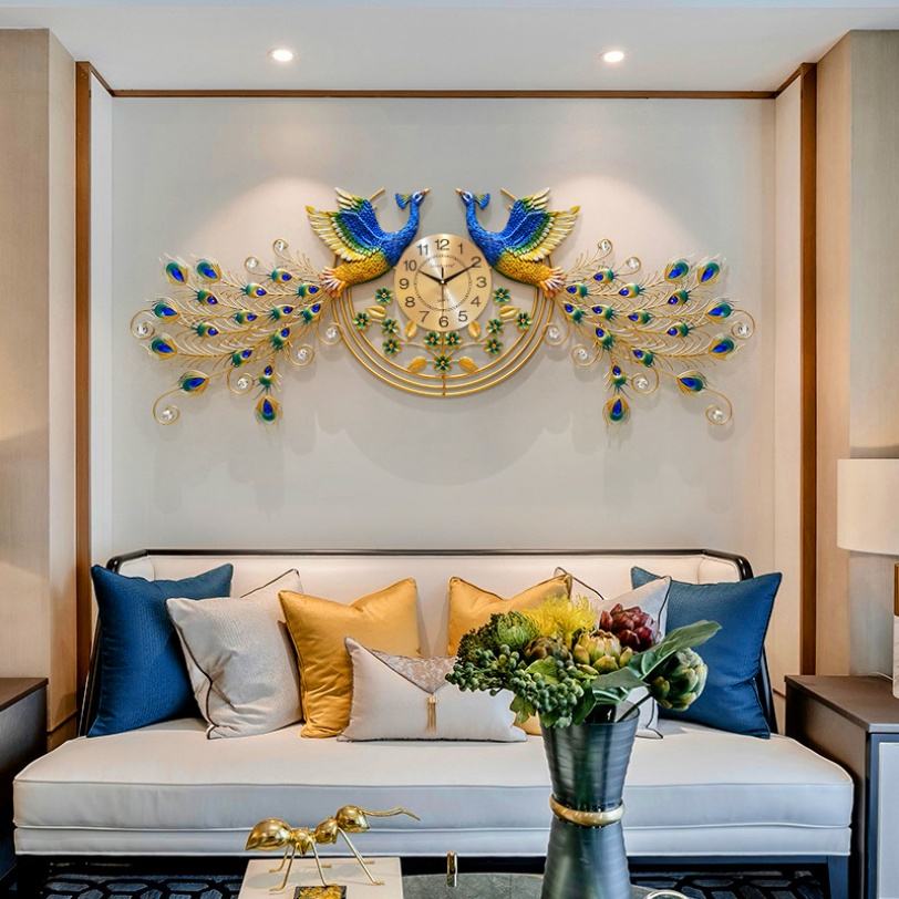Horloge murale créative en fer forgé silencieuse, motif paon, pour salon, vente directe d'usine