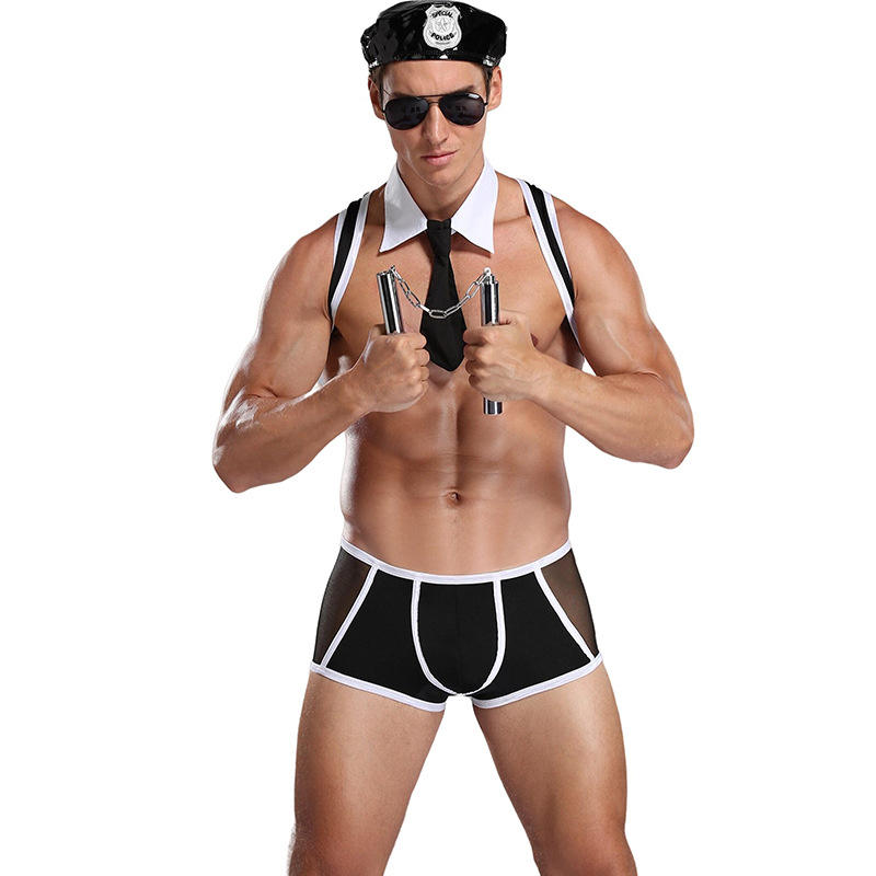 Costume de Police Sexy direct d'usine pour hommes slips en maille transparente harnais à bretelles adulte Halloween jeu de rôle Lingerie Sex Toy tenue