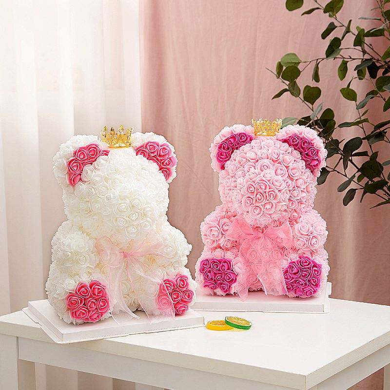 Expédition directe d'usine saint valentin Rose ours cadeau fleur ours en peluche avec Rose réaliste Rose ours 25cm