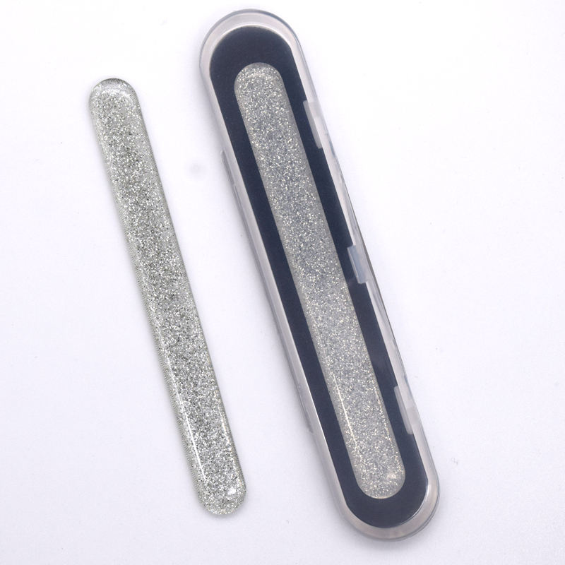 Lime à ongles polie en verre nano à paillettes argentées directe d'usine avec emballage étui