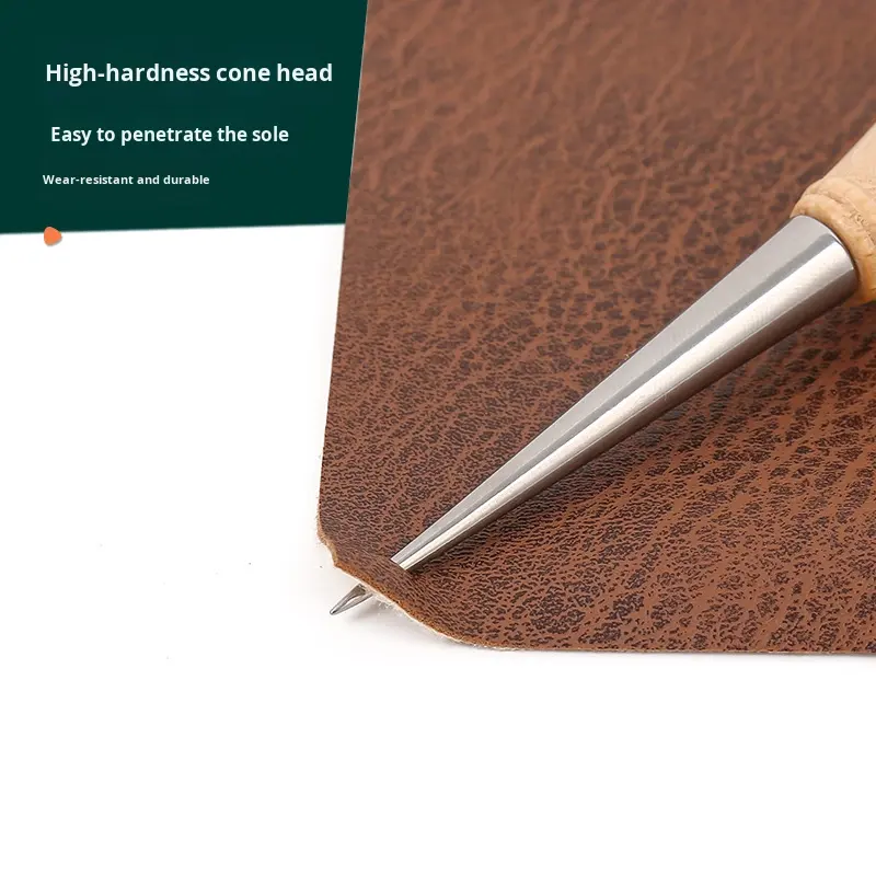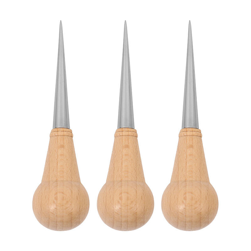Usine directe simple gourde poinçon en acier inoxydable bois de hêtre naturel manche en bois outil de réparation de chaussures à la main pour un usage domestique