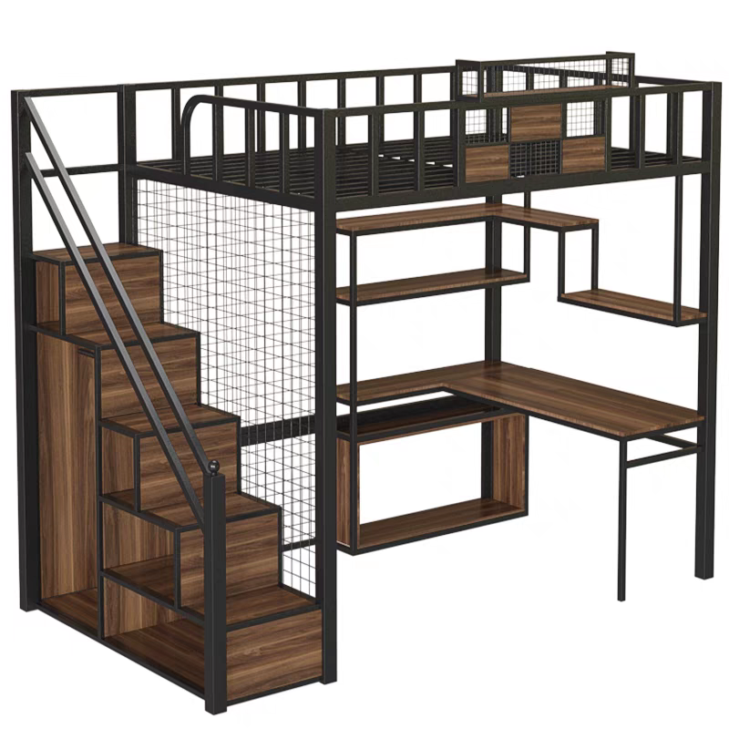 Direct de l'usine petit appartement maison dortoir métal stable étudiant stockage en bois Loft lits superposés avec bureau