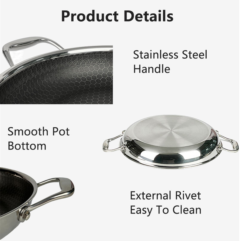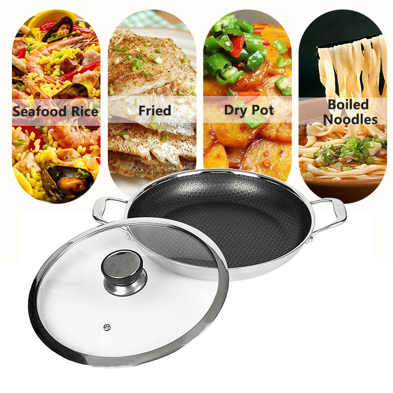 Poêle à Paella espagnole directe d'usine 28cm Double poignée SS 304 nid d'abeille antiadhésif 5 plis ustensiles de cuisine fruits de mer poêle à frire cuisinière électrique