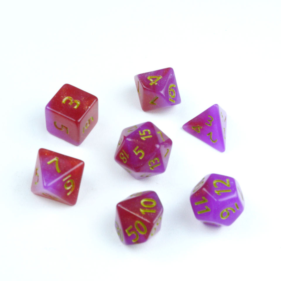 Ensemble de 7 dés polyédriques à dégradé scintillant, fabrication artisanale haut de gamme personnalisée pour les jeux de divertissement, directement de l'usine