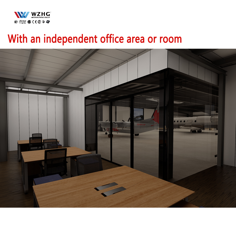 Hangar en acier directement de l'usine, structure en acier économique, hangar pour avions, hangar pour jets privés avec une zone de bureau indépendante