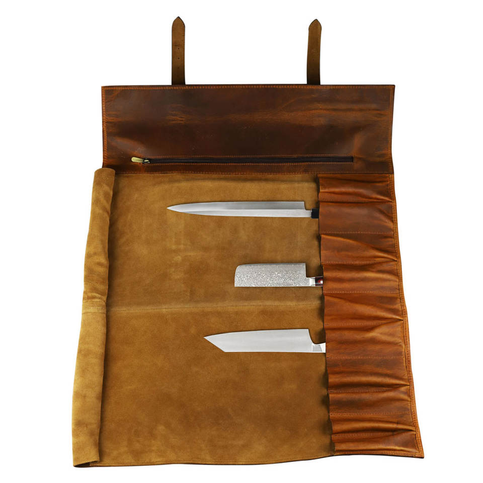 Sacs en rouleau de couteau en cuir véritable de haute qualité/sacs en rouleau en cuir de taille personnalisée à vendre