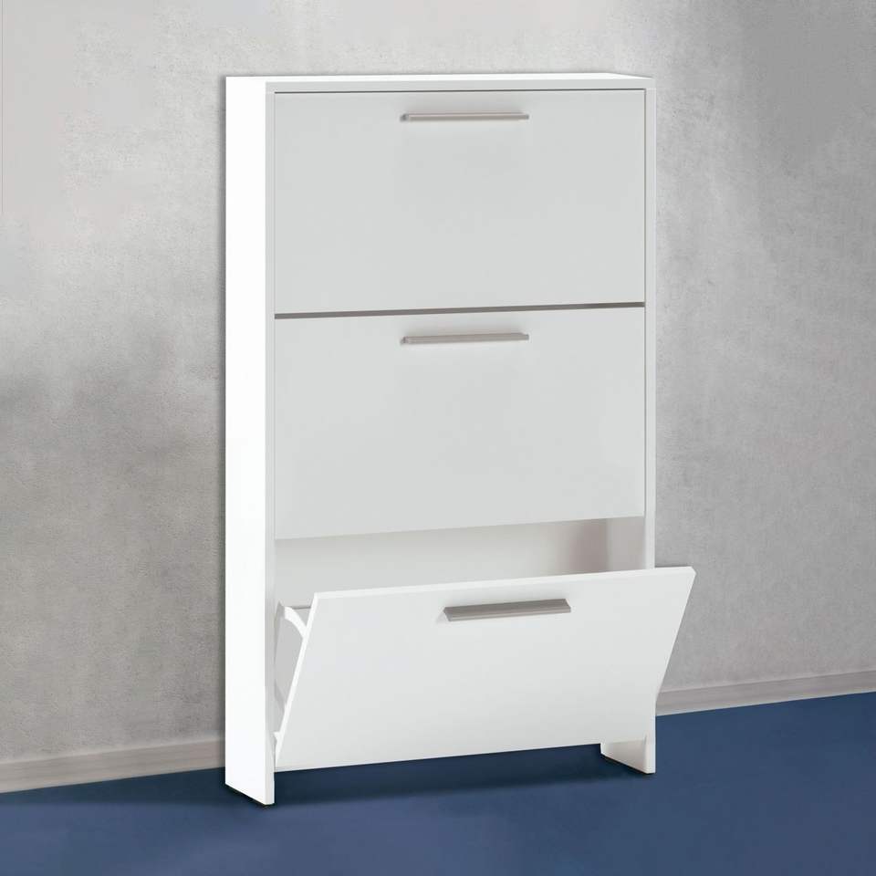 Fournisseur direct d'usine, 100% fabriqué en Espagne, étagère à chaussures blanche à 3 portes et 3 niveaux, étagère à chaussures et support pour la maison
