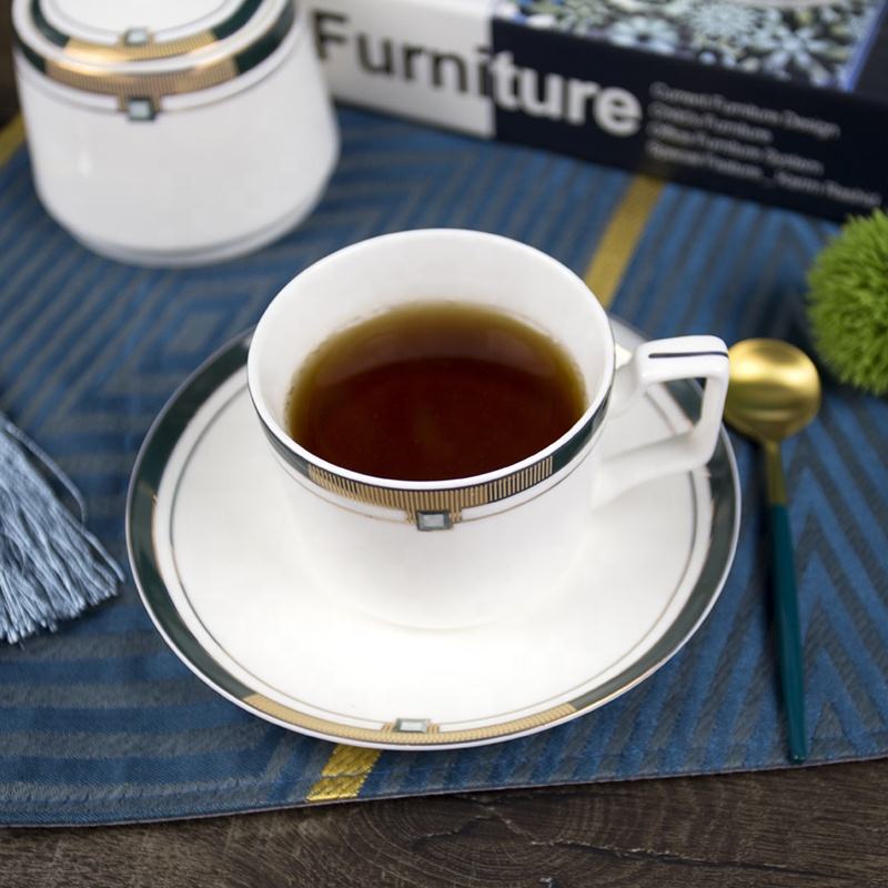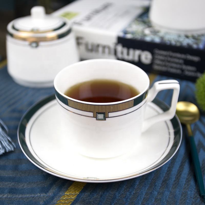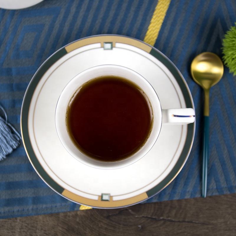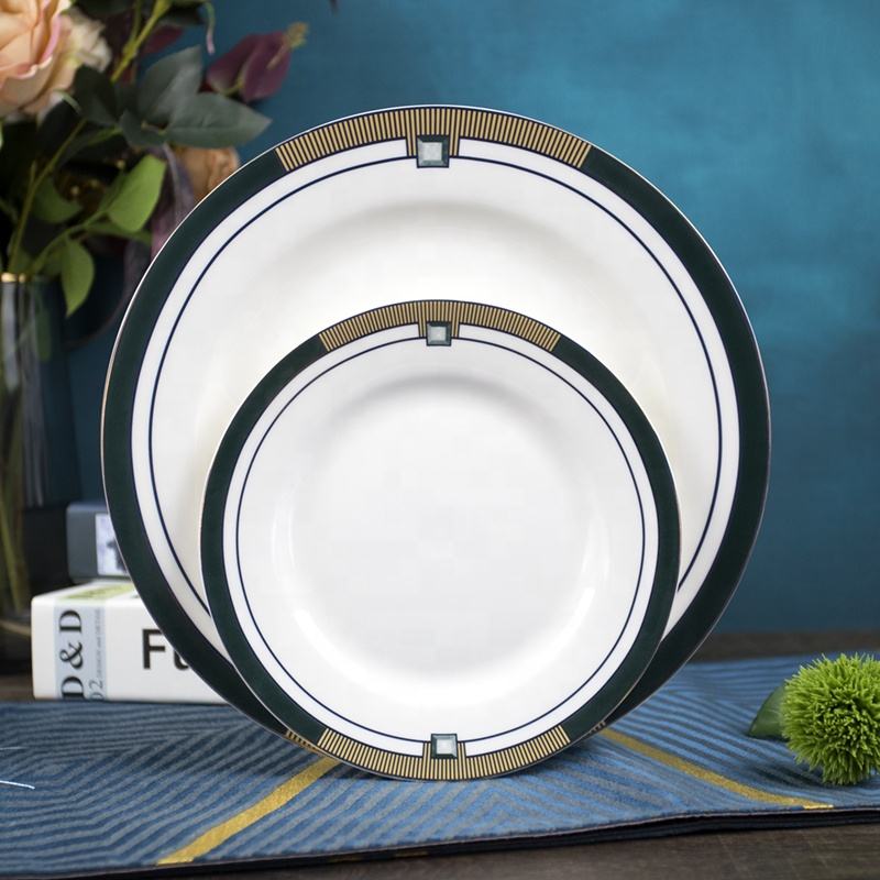 Fourniture directe d'usine ensembles d'assiettes à bas prix vaisselle vert foncé fantaisie or brillant design exquis vaisselle en porcelaine