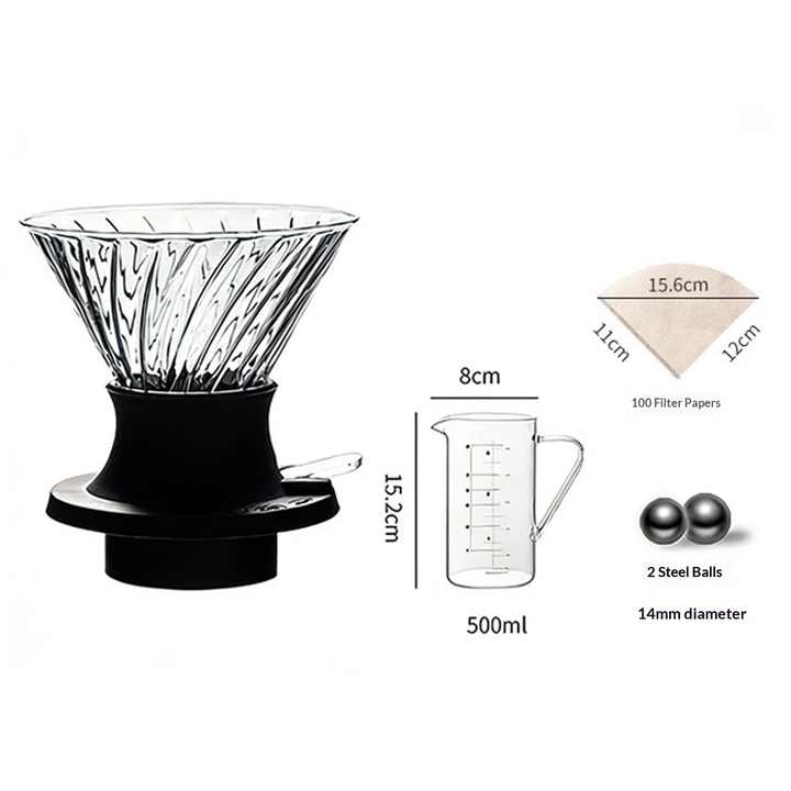 Coffret de cafetière à immersion haut de gamme, livraison directe d'usine, avec serveur en verre de 500 ml, 100 filtres et boules en acier inoxydable
