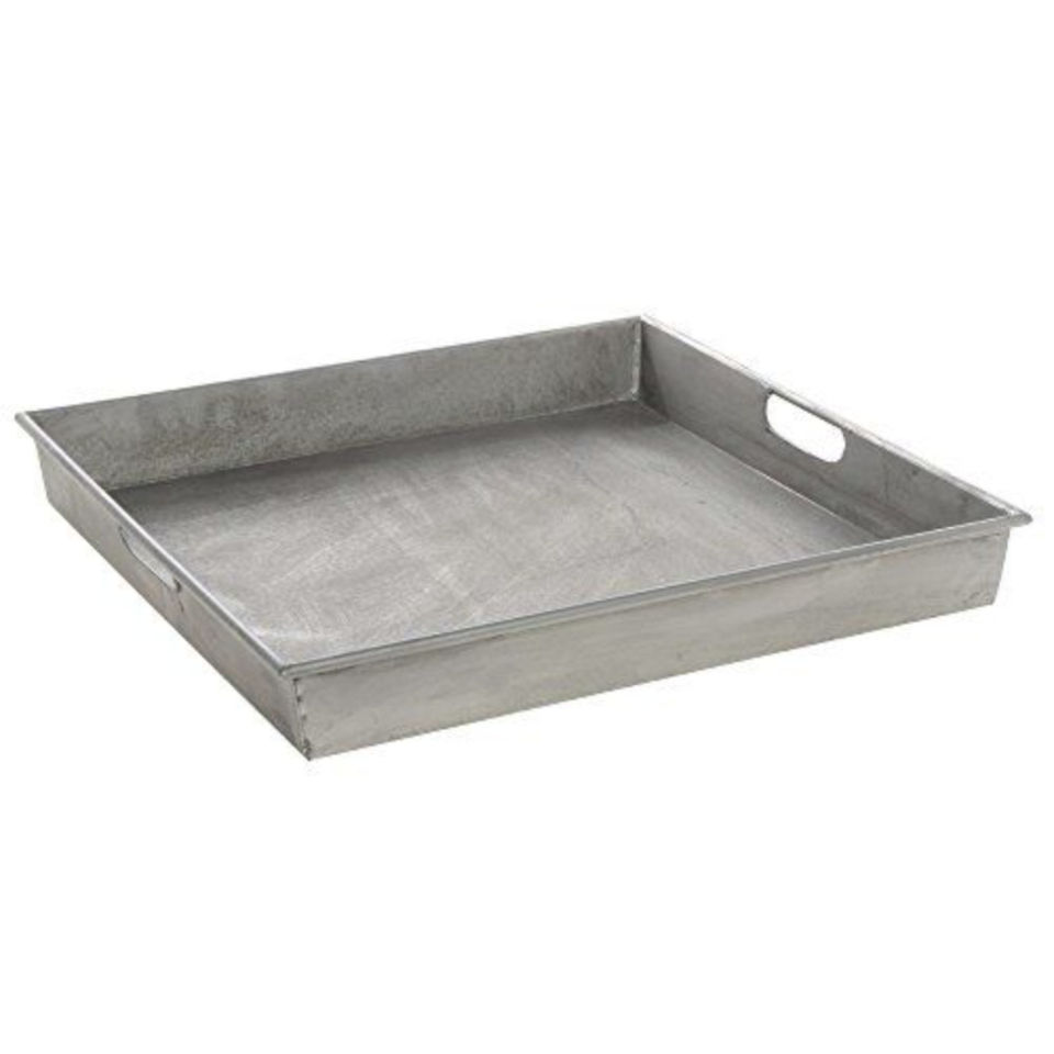 Plateau de service carré en métal galvanisé avec poignées intégrées, idéal pour la décoration intérieure et la cuisine, prix abordable, directement de l'usine.
