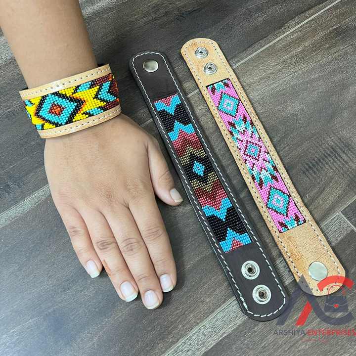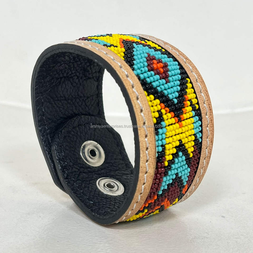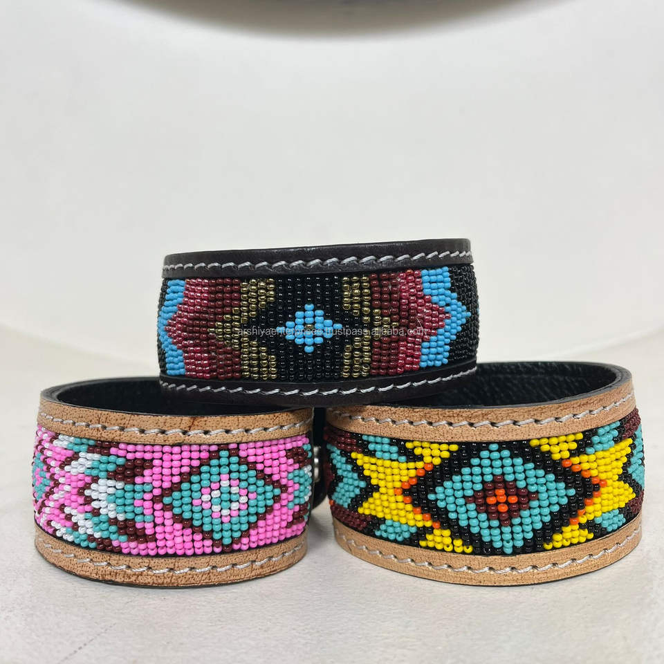 Nom du produit:Bracelet manchette perlé en cuir véritable usiné à la main